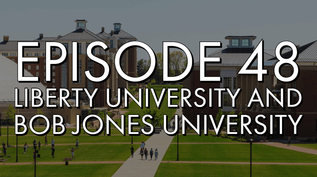 This episode covers two well-known Christian fundamentalist institutions of higher learning: Liberty University, started by Jerry Falwell, and Bob Jones University, started by, well, Bob Jones.